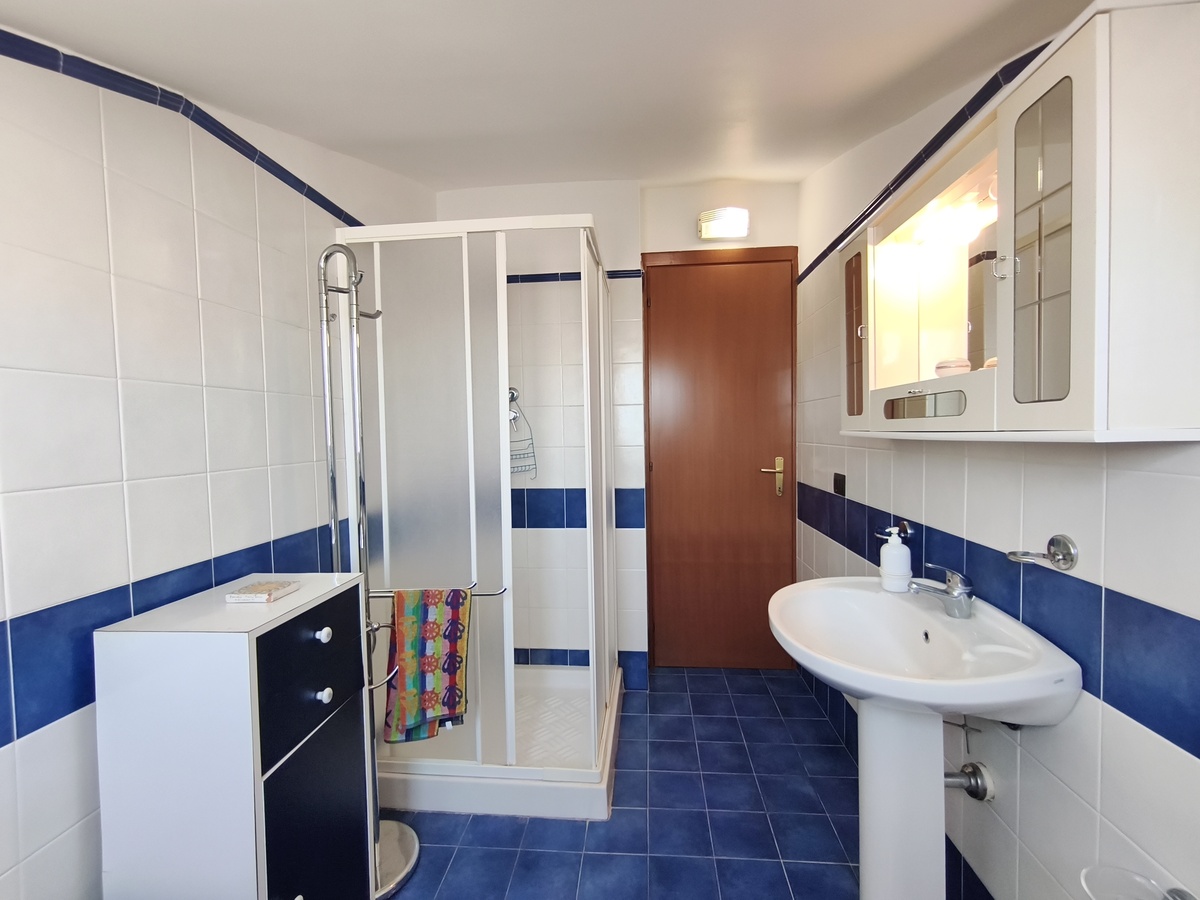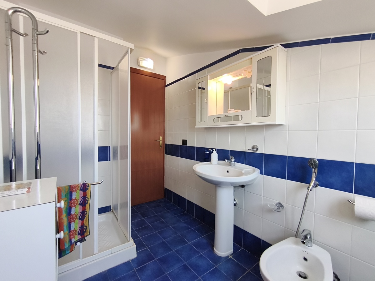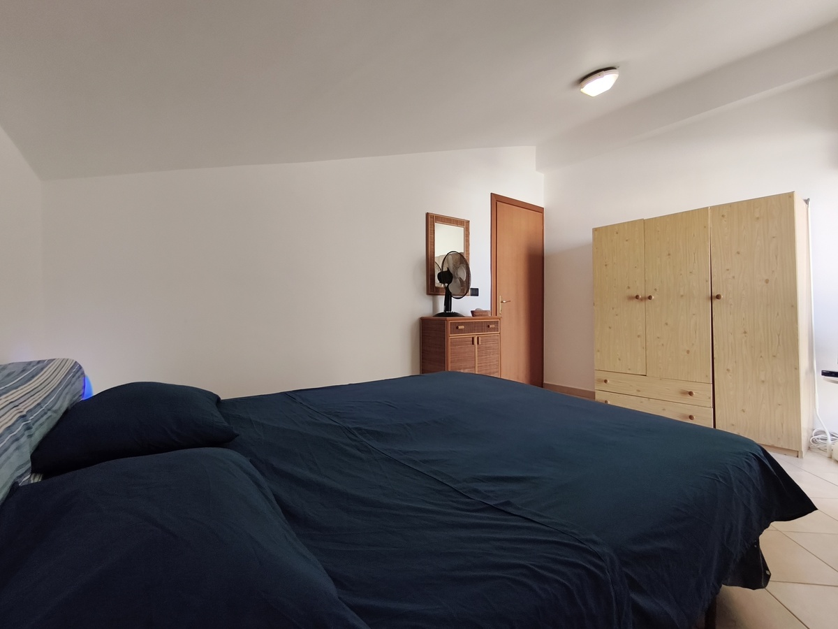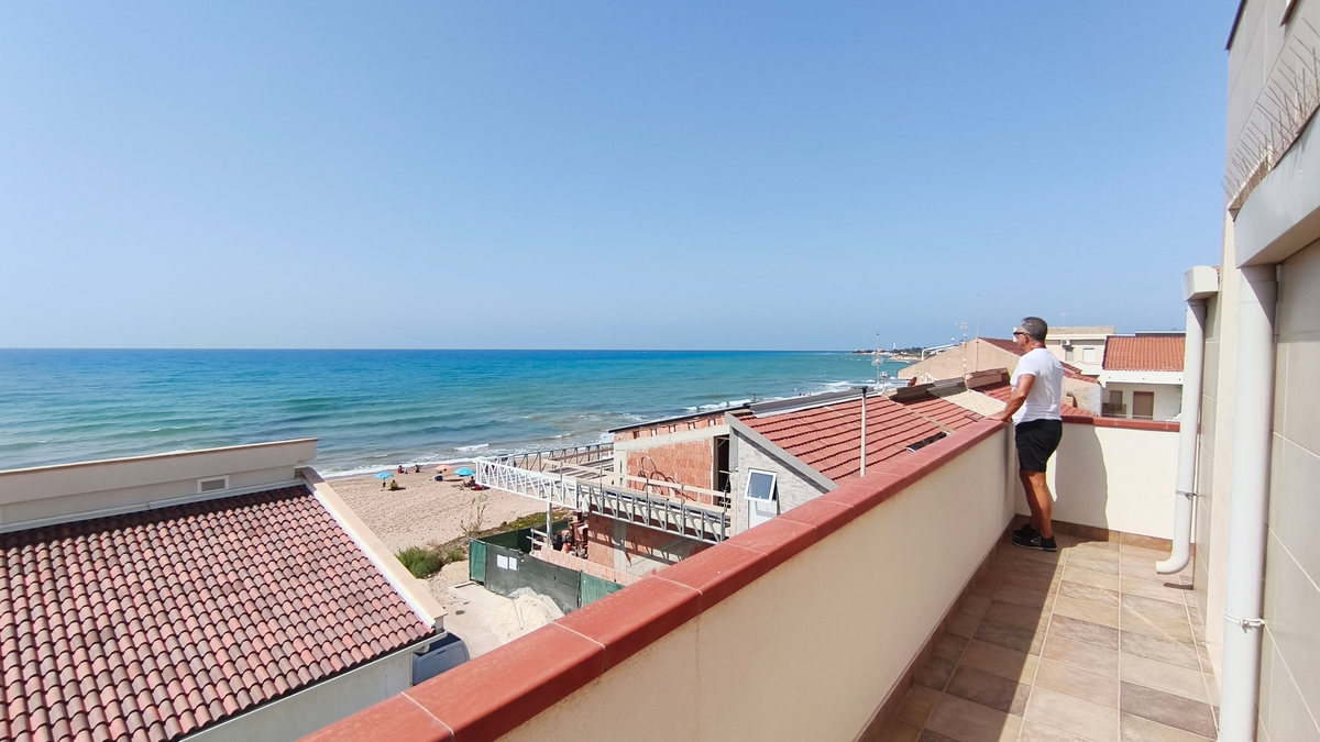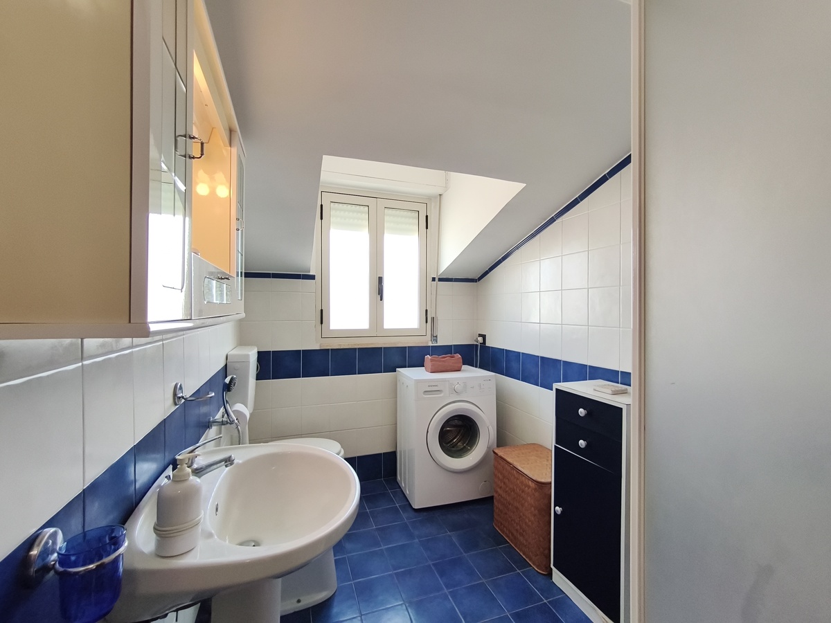 Al secondo piano di questo stabile quasi fronte mare c’è la nostra splendida mansarda con 30 metri quadri di veranda, un ampio soggiorno con comodi divani, tavolo da pranzo e TV full HD e aria condizionata. Cucina completa comunicante con il soggiorno. 2 camere da letto matrimoniali, 1 bagno grande completo con lavatrice ed un piccolo doppio servizio con lavabo e water. Balcone perimetrale x tutta la lunghezza della mansarda. All’esterno del balcone c’è una doccia per quando si rientra dal mare. La casa è arredata con mobili di buona finitura e dotata di tutti i conforts. Climatizzatore e TV full HD nella suite matrimoniale. Parcheggio libero in strada. Situato in una zona tranquilla e sicura, permette un soggiorno in pieno relax perché si arriva in spiaggia (a soli 20 mt.) senza attraversare la strada provinciale. La casa inoltre non è distante dal Lido Selene (bar-ristorante) e dal Lido della Polizia (bar-ristorante con ombrelloni e sdraio) raggiungibili, via spiaggia, in pochi minuti.